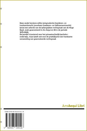 Deze zesde herziene editie Jurisprudentie Goederen- en insolventierecht (voorheen Goederen- en faillissementsrecht) bevat een selectie van de belangrijkste rechtspraak van de Hoge Raad, zoals geannoteerd in Ars Aequi en NJ in de periode 1975-2020. De bundel is bestemd voor het privaatrechtelijk bachelor-onderwijs, maar biedt ook voor de praktijkjurist een handzame verzameling van geannoteerde rechtspraak