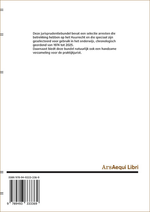Deze jurisprudentiebundel bevat een selectie arresten die betrekking hebben op het Huurrecht en die speciaal zijn geselecteerd voor gebruik in het onderwijs, chronologisch geordend van 1974 tot 2025. Daarnaast biedt deze bundel natuurlijk ook een handzame verzameling voor de praktijkjurist.