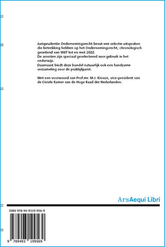 Jurisprudentie Ondernemingsrecht bevat een selectie uitspraken die betrekking hebben op het Ondernemingsrecht, chronologisch geordend van 1897 tot en met 2022. De arresten zijn speciaal geselecteerd voor gebruik in het onderwijs. Daarnaast biedt deze bundel natuurlijk ook een handzame verzameling voor de praktijkjurist.