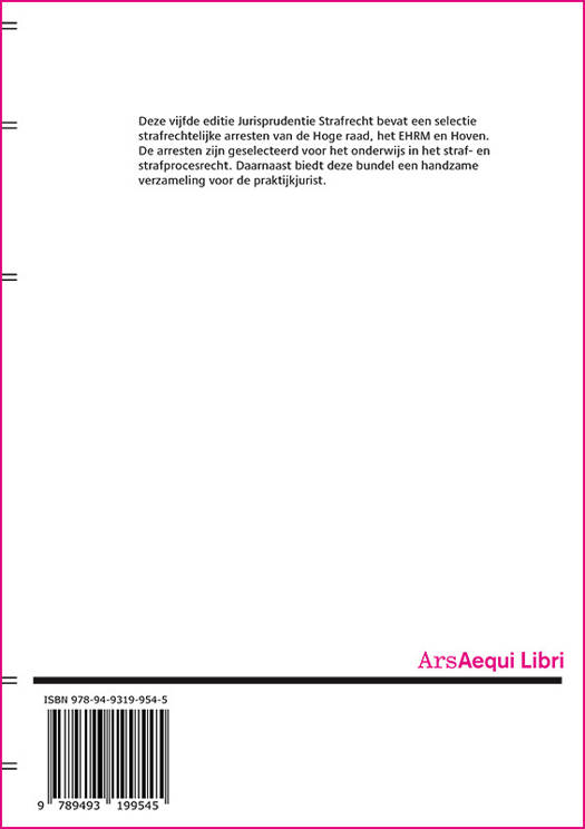 Deze vijfde editie Jurisprudentie Strafrecht bevat een selectie strafrechtelijke arresten van de Hoge raad, het EHRM en Hoven. De arresten zijn geselecteerd voor het onderwijs in het straf- en strafprocesrecht. Daarnaast biedt deze bundel een handzame verzameling voor de praktijkjurist.