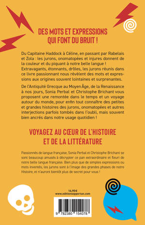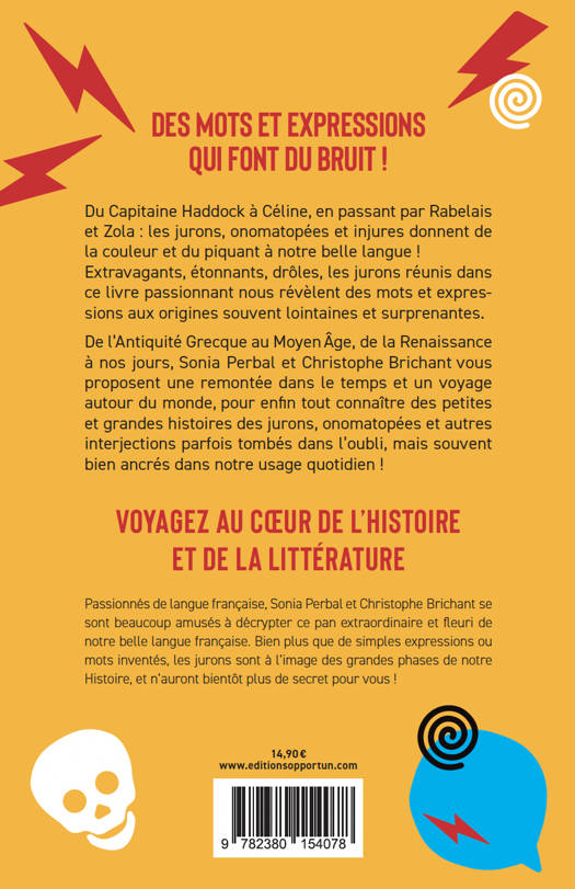 Passionnés de langue française, Sonia Perbal et Christophe Brichant se sont beaucoup amusés à décrypter ce pan extraordinaire et fleuri de notre belle langue française. Bien plus que de simples expressions ou mots inventés, les jurons sont à l’image des grandes phases de notre Histoire et n’auront bientôt plus de secret pour vous !