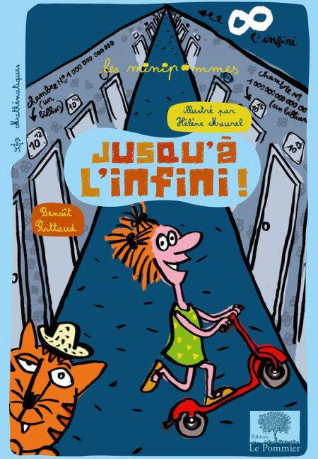 Les trois filles rencontreront un peintre mystérieux qui leur parlera de la perspective, du point de fuite, et du mystérieux hôtel Hilbert. Un petit saut dans cet hôtel leur fera découvrir un lieu étrange, jamais complet, qui peut se remplir, à l'infini ! Qu'est-ce qu'il y a comme exemple d'infini ? Est-ce qu'on peut compter jusqu'à l'infini ? est-ce qu'on a une infinité d'ancêtres ? Autant de questions qui sont abordées dans ce nouveau titre de la collection les Minipommes.