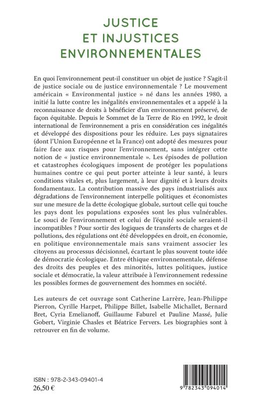 Réfugiés climatiques, victimes de catastrophes industrielles, minorités ethniques expulsées, paysans chassés de leurs terres, quartiers pauvres dévastés par des catastrophes naturelles, populations contaminées par des pollutions diverses... Une inégale vulnérabilité des peuples, une inégale distribution des facteurs de danger et des menaces conduisent à s'interroger sur la « justice environnementale » et l'équité sociale. Entre éthique environnementale, défense des droits des peuples et des minorités, etc., cet ouvrage analyse les formes de gouvernement des hommes et de l'environnement.