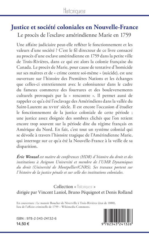 Une affaire judiciaire peut-elle refléter le fonctionnement et les valeurs d’une société ? C’est le fil directeur de ce livre consacré au procès d’une esclave amérindienne en 1759 dans la petite ville de Trois-Rivières, dans ce qui est alors la colonie française du Canada. Le procès de Marie est une ouverture sur l’histoire des Premières Nations et les échanges que celles-ci entretiennent avec le colonisateur dans le cadre du fameux commerce des fourrures et des bouleversements culturels provoqués par la « rencontre ». Il permet aussi de rappeler ce qu’a été l’esclavage des Amérindiens dans la vallée du Saint-Laurent au XVIIIe siècle et d’étudier le fonctionnement de la justice coloniale de cette période