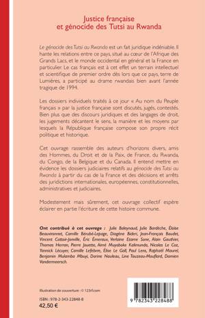 Le génocide des Tutsi au Rwanda est un fait juridique indéniable. Il hante les relations entre ce pays et le monde occidental en général et la France en particulier. Le cas français est à cet effet un terrain intellectuel et scientifique de premier ordre dès lors qu'il a participé au drame rwandais bien avant l’année tragique de 1994. Les dossiers individuels traités à ce jour « Au nom du Peuple français » par la justice française sont discutés, jugés, contestés. Cet ouvrage collectif entend mettre en évidence les dossiers judiciaires relatifs au génocide des Tutsi au Rwanda à partir du cas de la France et des décisions et arrêts des juridictions internationales, européennes, constitutionnelles, administratives et judiciaires.