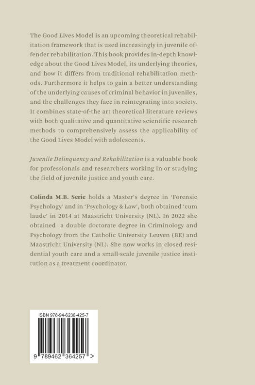 The Good Lives Model is an upcoming theoretical rehabilitation framework that is used increasingly in juvenile offender rehabilitation. This book provides in-depth knowledge about the Good Lives Model, its underlying theories, and how it differs from traditional rehabilitation methods. Furthermore it helps to gain a better understanding of the underlying causes of criminal behavior in juveniles, and the challenges they face in reintegrating into society. It combines state-of-the art theoretical literature reviews with both qualitative and quantitative scientific research methods to comprehensively assess the applicability of the Good Lives Model with adolescents.