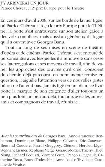 En ces jours d'avril 2008, sur les bords de la mer Egée, où Patrice Chéreau a reçu le prix Europe pour le Théâtre, la porte s'est entrouverte sur son atelier, grâce à des voix complices, mais aussi au généreux dialogue qu'il a ouvert avec Georges Banu. Tout au long de ses mises en scène de théâtre, d'opéra et de cinéma, Patrice Chéreau s'est entouré de personnalités avec lesquelles il a renouvelé sans cesse ses interrogations et ses moyens de travail, afin de varier les approches des oeuvres qu'il crée. Conscient du chemin déjà parcouru, en permanente remise en question, il aiguille l'attention vers de nouvelles pistes où on ne l'attend pas. Jamais figé en un bilan, ce livre porte la marque de son exigence d'aller toujours un peu plus loin, un peu au-delà, toujours avec les autres, amis et compagnons de travail, réunis ici.