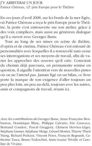 «Avec les contributions de Georges Banu, Anne-Françoise Benhamou, Dominique Blanc, Philippe Calvario, Eric Caravaca, Bertrand Couderc, Pascal Greggory, Clément Hervieu-Léger, Stéphane Lissner, Stéphane Metge, Gérard Mortier, Thierry Thieû Niang, Richard Peduzzi, Vincent Perez, François Regnault, Catherine Tasca, Bruno Todeschini, Anne-Louise Trividic et Caroline de Vivaise.»