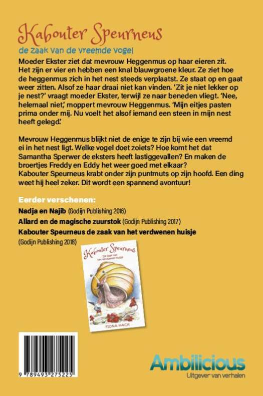 Mevrouw Heggenmus blijkt niet de enige te zijn bij wie een vreemd ei in het nest ligt. Welke vogel doet zoiets? Hoe komt het dat Samantha Sperwer de eksters heeft lastiggevallen? En maken de broertjes Freddy en Eddy het weer goed met elkaar? Kabouter Speurneus krabt onder zijn puntmuts op zijn hoofd. Een ding weet hij heel zeker. Dit wordt een spannend avontuur!