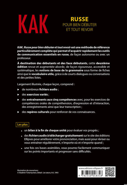 À destination des débutants et des faux débutants, KAK est une méthode particulièrement complète qui permet d’acquérir rapidement les outils de communication essentiels en russe, de façon autonome ou avec un professeur.