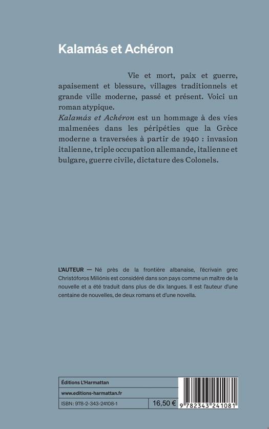 Vie et mort, paix et guerre,apaisement et blessure, villages traditionnels et grande ville moderne, passé et présent. Voici un roman atypique.Kalamás et Achéron est un hommage à des vies malmenées dans les péripéties que la Grèce moderne a traversées à partir de 1940 : invasion italienne, triple occupation allemande, italienne et bulgare, guerre civile, dictature des Colonels.