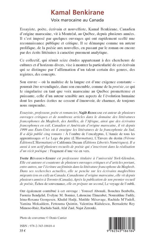 Essayiste, poète, écrivain et nouvelliste, Kamal Benkirane, Canadien d'origine marocaine, s'est rapidement acquis une reconnaissance publique et critique. Ce collectif, qui réunit seize études appartenant à des chercheurs de cultures et d'horizons divers, vise à montrer la particularité de cet écrivain qui se distingue par l'affirmation d'un talent certain des genres, des registres, des concepts. Son oeuvre pourrait être revendiquée comme de la proésie, ce qui le singularise en tant que voix marocaine au Québec prometteuse et puissante, celle d'un auteur sensible aux aspects de l'évolution humaine dont les paroles écrites ne cessent d'émouvoir, de charmer, de toujours nous surprendre.
