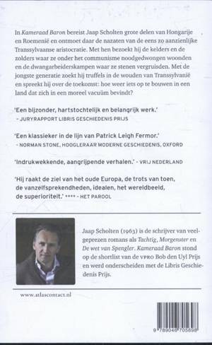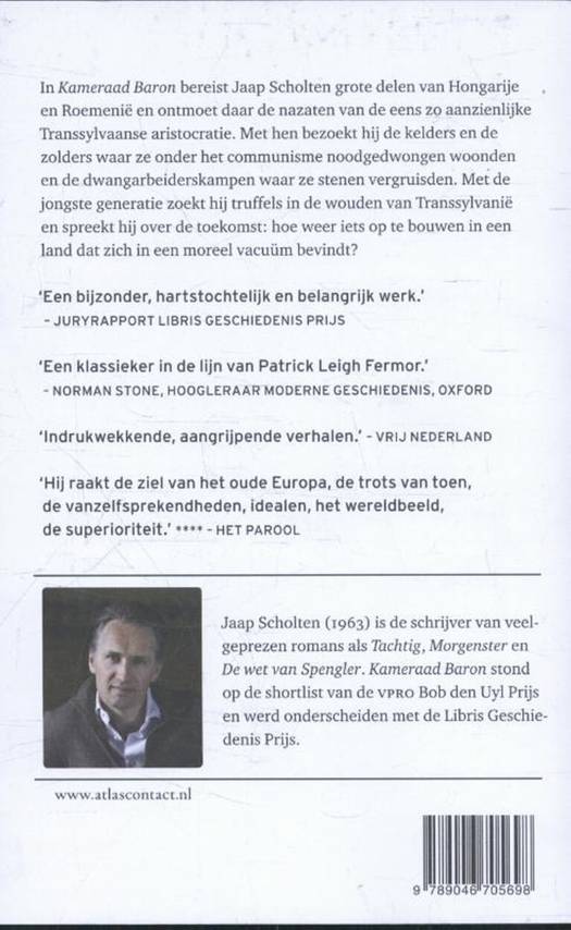 Niet lang nadat Nicolai Ceausescu op 25 december 1989 was geëxecuteerd reed Jaap Scholten met zijn geliefde zelf nazaat van een familie die tijdens het communisme tot de vervolgden behoorden - in een oude cabriolet over de Karpaten naar Boekarest om een oudoom te bezoeken die aldaar ambassadeur was. De voorwereldse schoonheid van Transsylvanië betoverde hem en hij keerde er steeds weer terug. Inmiddels woont Scholten 7 jaar in Boedapest en is hij getrouwd met een vrouw van Hongaarse afkomst. Toen hij enkele jaren geleden onderzoek deed naar de Transsylvaanse wouden, stuitte hij op het onwaarschijnlijke verhaal van de bijna uitgeroeide aristocratie en besefte dat hun geschiedenis niet los te zien is van de huidige stand van zaken in Oost Europa. Zijn liefde voor Centraal-Europa leidde tot het boek Kameraad Baron.