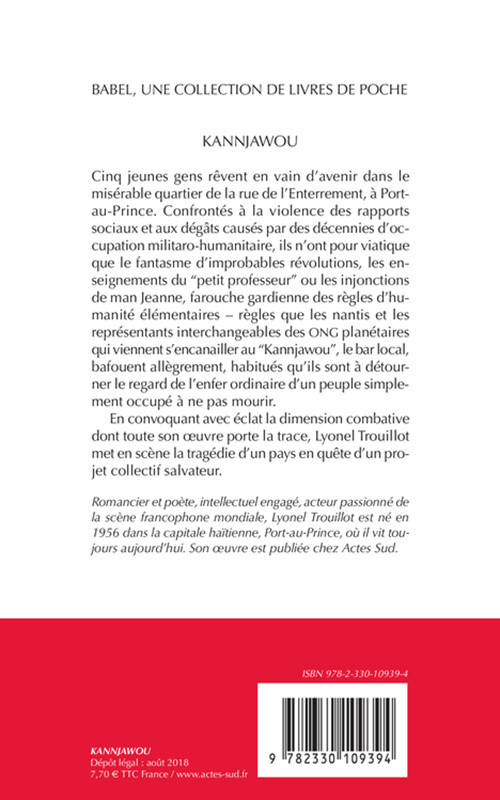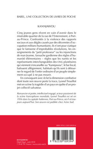 Cinq jeunes gens rêvent en vain d'avenir dans le misérable quartier de la rue de l'Enterrement, à Port-au-Prince. Confrontés à la violence des rapports sociaux et aux dégâts causés par des décennies d'occupation militaro-humanitaire, ils n'ont pour viatique que le fantasme d'improbables révolutions, les enseignements du "petit professeur" ou les injonctions de man Jeanne, farouche gardienne des règles d'humanité élémentaires - règles que les nantis et les représentants interchangeables des ONG planétaires qui viennent s'encanailler au "Kannjawou", le bar local, bafouent allègrement, habitués qu'ils sont à détourner le regard de l'enfer ordinaire d'un peuple simplement occupé à ne pas mourir.