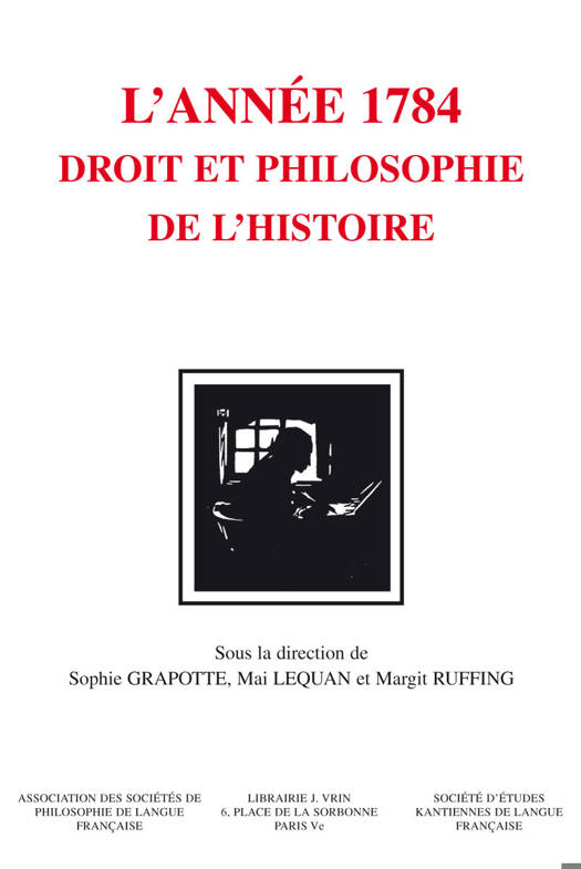 Le present volume, L'annee 1784: droit et philosophie de l'histoire, rassemble les conferences plenieres et communications presentees lors du XIIe Congres International de la Societe d'Etudes Kantiennes de Langue Francaise, qui s'est tenu du 28 septembre au 1 er octobre 2015 a la Johannes Gutenberg-Universitat de Mayence. La philosophie de l'histoire, la pensee du droit et de la politique ainsi que la definition des Lumieres, que l'on rencontre notamment dans les opuscules Qu'est-ce que les Lumieres? et L'idee d'une histoire universelle d'un point de vue cosmopolitique, de meme que dans le cours sur le droit naturel dit Feyerabend, respectivement publies et dispense en 1784, demeurent aujourd'hui encore d'une grande actualite, en particulier dans la mesure ou ces textes recelent les principales theses de Kant relatives au developpement intellectuel et moral de l'humanite, a l'emergence d'un espace de discussion publique et a l'elaboration politico-juridique d'une paix durable entre les hommes, respectueuse de leur diversite culturelle et religieuse.