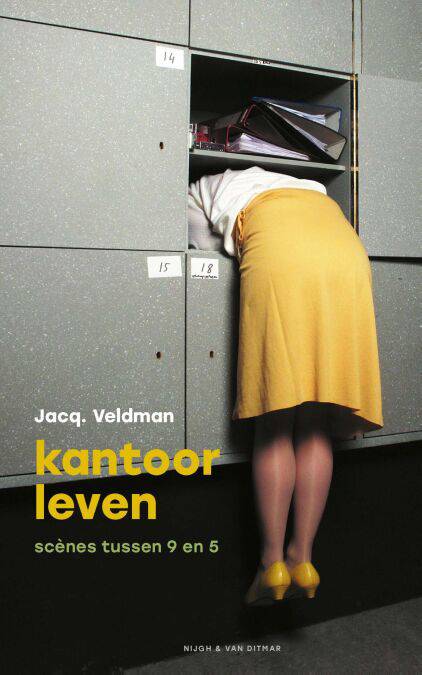 Ik had slecht geslapen — en toen begon mijn baas op de vroege ochtend ook nog eens over het Creëren Van Verbinding. Ik had direct zin om mijn brooddoos tegen hem aan te gooien. Maar ik heb een laf karakter dus die vlieger ging niet op. Mijn baas wierp zijn armen in de lucht en riep: 'En zó creëren we dus verbinding!' De collega naast me giechelde en wenkte. Ik boog me naar haar toe. 'Sorry, de verbinding wordt nu verbroken,' zei ze, daarna viel ze proestend voorover. Ik had graag zelf deze grap willen maken dus ik glimlachte welwillend en keek vaag in de verte, alsof daar wel betere grappen in het verschiet lagen. In Kantoorleven beschrijft Jacq. Veldman op tragikomische wijze hoe mensen zich tot elkaar verhouden in het kantoorbestaan. Door middel van herkenbare scènes uit de sociale arena die kantoor heet, lezen we hoe iedereen er tussen negen en vijf het beste van probeert te maken — met vaak rampzalige gevolgen. In Veldmans scherpe observaties trekt van alles voorbij: de stilzwijgende gevechten over het raam dat open of dicht moet, workshops waar je je schoenen uit moet trekken, hoe je per ongeluk gemotiveerd kunt raken door een motivational speech en mensen die voordringen bij het kopieerapparaat. Veldman beschrijft het kantoorleven mild, humoristisch maar vernietigend.