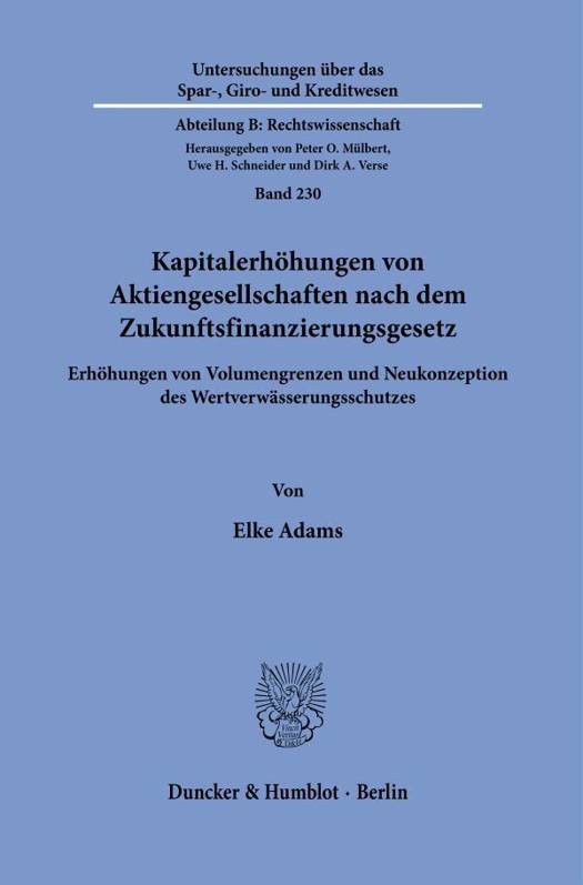 Die Arbeit überprüft die mit dem Zukunftsfinanzierungsgesetz (ZuFinG) vom 11. Dezember 2023 gebrachten Änderungen im aktienrechtlichen Kapitalerhöhungsrecht zur Erleichterung der Eigenkapitalaufnahme für deutsche Aktiengesellschaften. Nach einer Darstellung der Grundlagen werden zunächst die Anhebung der Volumengrenzen beim vereinfachten Bezugsrechtsausschluss ( 186 Abs. 3 Satz 4 AktG) sowie beim bedingten Kapital für Unternehmenszusammenschlüsse ( 192 Abs. 2 Nr. 2 AktG) und für Mitarbeiterbeteiligungen ( 192 Abs. 2 Nr. 3 AktG) untersucht. Es folgt die Analyse der im Fokus der Neuerungen stehenden Neukonzeption des Wertverwässerungsschutzes (
