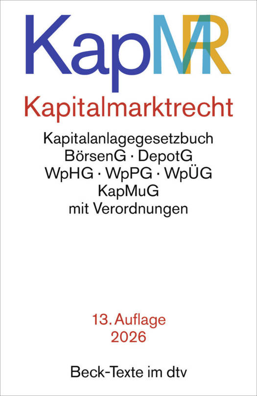 Neuauflage Die 13 Auflage berücksichtigt alle bis zum 15.3.2026 verkündeten Änderungen und enthält zusätzlich die Kryptomärktemitteilungs-VO sowie eine überarbeitete Einführung von Prof. Dr. Lars Klöhn.