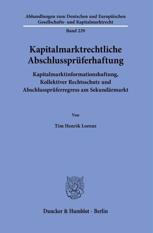 English summary: Auditor's Liability on Capital Markets. Liability for Misinformation, Collective Redress and Recourse to Auditors on Secondary Markets In the light of the Wirecard accounting scandal, this monograph addresses the pressing question of auditors' liability on capital markets in Germany. The author examines whether and to what extent auditor's liability on capital markets can be developed within the current German law. To this end, an interdisciplinary look is taken at substantive liability law, procedural law, insolvency law, and the innovations brought about by the Financial Market Stabilization Act (FISG). German description: Der Beginn der gerichtlichen Aufarbeitung des Wirecard-Bilanzskandals hat in Deutschland erneut die Frage nach der Haftung von Abschlussprufern gegenuber Anlegern am Kapitalmarkt aufgeworfen. Die rechtswissenschaftliche Debatte zur Abschlusspruferhaftung am Kapitalmarkt hat sich in den letzten Jahrzehnten weitestgehend darauf beschrankt, die Einfuhrung einer kapitalmarktrechtlichen Haftung von Abschlussprufern de lege ferenda zu fordern und zu skizzieren. Dazu ist es in Deutschland jedoch auch in Folge des Finanzmarktstabilisierungsgesetzes (FISG) nicht gekommen. Daher ergibt sich aktuell die drangende Frage, inwieweit Abschlussprufer nach dem geltenden Recht am Kapitalmarkt effektiv fur Prufungsfehler in Haftung genommen werden konnen und ob aus dem geltenden Recht eine kapitalmarktrechtliche Abschlusspruferhaftung entwickelt werden kann. Die Arbeit widmet sich dieser Fragestellung durch einen interdisziplinaren Blick auf das materielle Haftungsrecht, Prozessrecht und Insolvenzrecht.Die Arbeit wurde mit dem Peter-Schlechtriem-Preis 2023 ausgezeichnet.