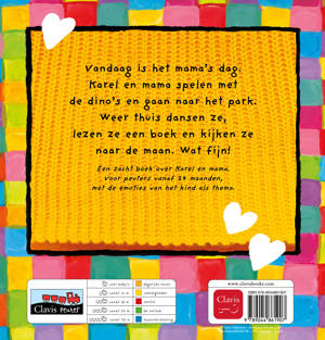 Vandaag is het mama’s dag. Karel en mama spelen met de dino’s en gaan naar het park. Weer thuis dansen ze, lezen ze een boek en kijken ze naar de maan. Wat fijn! Een zacht boek over Karel en mama. Voor peuters vanaf 24 maanden, met de emoties van het kind als thema.