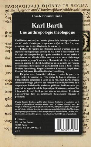 Karl Barth (1886-1968) est l'un des géants de la théologie chrétienne du XXe siècle. L'étude de l'épître aux Romains permet d'entrer dans un exposé de la Dogmatique publiée de 1932 à 1968 et restée inachevée. L'influence de sa pensée sur l'œuvre de nombreux théologiens (dont Tilich, Pennenberg, Moltmann, Jüngel, etc) est parfaitement claire. S'intéresser aujourd'hui à la pensée de Karl Barth permet ainsi de questionner l'existence d'aujourd'hui dans ses dimensions théologiques, éthiques et politiques.