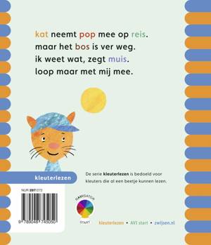 kat neemt pop mee op reis. maar het bos is ver weg. ik weet wat, zegt muis. loop maar met mij mee, kat.