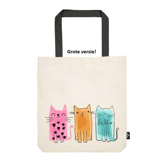 Katoenen tas groot katten 39x42 cm