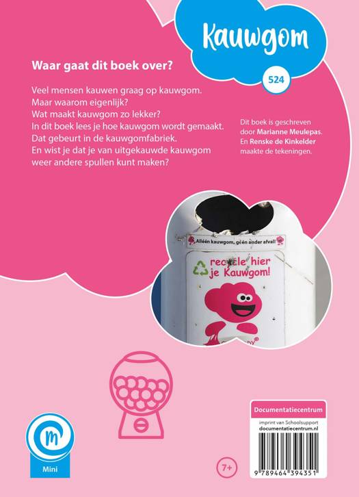 Veel mensen kauwen graag op kauwgom. Maar waarom eigenlijk? Wat maakt kauwgom zo lekker? In dit boek lees je hoe kauwgom wordt gemaakt. Dat gebeurt in de kauwgomfabriek. En wist je dat je van uitgekauwde kauwgom weer andere spullen kunt maken?