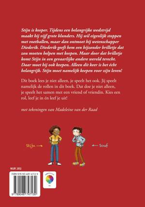 Stijn is keeper. Tijdens een belangrijke wedstrijd maakt hij vijf grote blunders. Hij wil eigenlijk stoppen met voetballen, maar dan ontmoet hij wetenschapper Diederik. Diederik geeft hem een bijzonder brilletje dat zou moeten helpen met keepen. Maar door dat brilletje komt Stijn in een gevaarlijke, andere wereld terecht. Daar moet hij ook keepen. Alleen dit keer is het écht belangrijk. Stijn moet namelijk keepen voor zijn leven! Toneellezen is zó leuk: je kiest een rol en leest samen hardop de dialogen voor. Zo voer je eigenlijk een toneelstukje op. Wie leest zijn rol het spannendst?