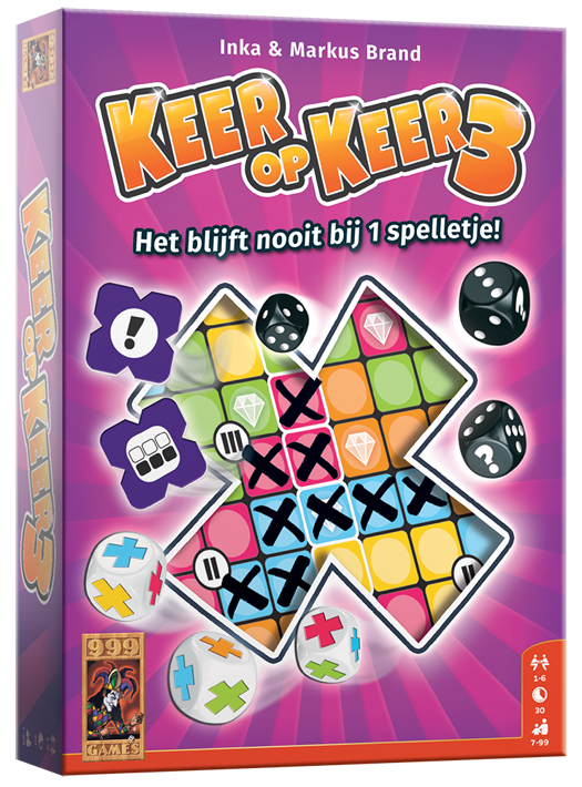 Heb jij keer op keer Keer op Keer gespeeld en snak je naar meer? Speel dan Keer op Keer 3: net zo toegankelijk als voorgaande edities, dus net zoveel dobbelplezier. Leuk voor iedereen die van vlotte dobbelspellen houdt!