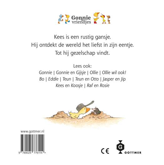 'Kees' is een peuterboekje in de serie 'Gonnie en vriendjes' van Olivier Dunrea. Het nieuwsgierige gansje Kees gaat in zijn eentje de boerderij verkennen. Kees is een rustig gansje, met een koekenpannetje op zijn kop. Hij is graag alleen, en hij kijkt het liefst zijn ogen uit. Hij is een echte avonturier! Ook dit verhaaltje in de 'Gonnie'-reeks gaat weer over een heel herkenbare ervaring, vooral voor hele nieuwsgierige peuters die vooral graag om zich heen kijken.