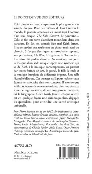Keith Jarrett est tout simplement la plus grande star actuelle du jazz. Pour des millions de fans à travers le monde, le pianiste américain est avant tout l'homme d'un seul disque, «The Köln Concert». Et pourtant, sa musique, qui porte la marque d'un style unique, opère une synthèse qui va de Bach à la musique contemporaine, en passant par toutes formes de jazz, le gospel, folk, le rock et la musique liturgique de différentes origines. Cet ouvrage est là pour replacer cette étonnante trajectoire dans son contexte. Il montre que le fil conducteur de cette confondante diversité, de cette sorte de rage créatrice, de cet engagement constant, est la biographie.