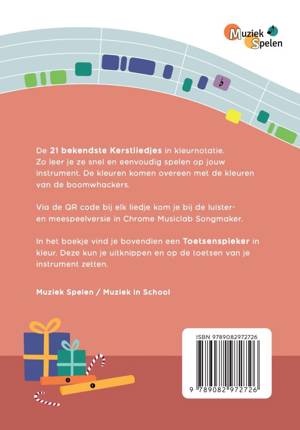 De 21 bekendste Kerstliedjes in kleurnotatie. Zo leer je ze snel en eenvoudig spelen op jouw instrument. De kleuren komen overeen met de kleuren van de boomwhackers. Via de QR code bij elk liedje kom je bij de luister en meespeelversie in Chrome Musiclab Songmaker. In het boekje vind je bovendien een Toetsenspieker in kleur. Deze kun je uitknippen en op de toetsen van je instrument zetten.