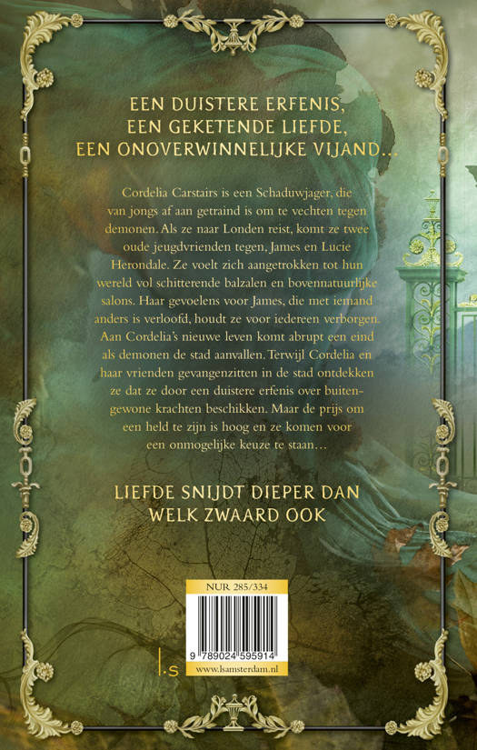Cordelia Carstairs is een Schaduwjager, een strijder die getraind is om te vechten tegen demonen. Als haar vader beschuldigd wordt van een verschrikkelijke misdaad, reist ze af naar Londen om de reputatieschade van haar familie zoveel mogelijk in te perken. Daar komt ze twee jeugdvrienden tegen en ze voelt zich aangetrokken tot hun wereld vol schitterende balzalen, geheime opdrachten en bovennatuurlijke salons met vampiers, heksenmeesters en goochelaars. Al die tijd houdt ze haar geheime liefde voor James, die met iemand anders is verloofd, verborgen. Dan vallen demonen de stad aan en Cordelia ontdekt dat zij en haar vrienden iets te maken hebben met een duistere erfenis…