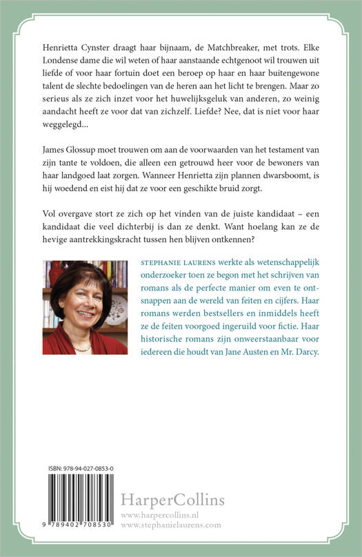 Voor fans van Bridgerton Henrietta Cynster draagt haar bijnaam, de Matchbreaker, met trots. Elke Londense dame die wil weten of haar aanstaande echtgenoot wil trouwen uit liefde of voor haar fortuin doet een beroep op haar en haar buiten gewone talent de slechte bedoelingen van de heren aan het licht te brengen. Maar zo serieus als ze zich inzet voor het huwelijksgeluk van anderen, zo weinig aandacht heeft ze voor dat van zichzelf. Liefde? Nee, dat is niet voor haar weggelegd...