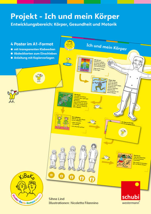 Inhalt: 4 Poster Ich und mein Körper - 64 transparente Klebeecken - 8 Abdeckkarten - 28 Seiten Anleitung mit Praxisideen zu den Aufgabenfeldern und Informationen zur Körperwahrnehmung - 5 Kopiervorlagen