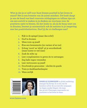 Wist je dat er zelf kunt voor kiezen om positief in het leven te staan? Het is een kwestie van de juiste mindset. Dit boek daagt je aan de hand van heel concrete uitdagingen en talloze tips uit om een switch te maken in je denken en voortaan voor de positieve optie te kiezen.