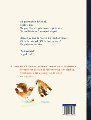 'Kijk dan toch! is één van de beste kinder- en jeugdboeken van het moment. Een slak probeert een pad te overtuigen van al het moois om hen heen. Als je maar goed om je heen kijkt, zie je echt hoe prachtig de wereld is. Een verhaal in spaarzame, suggestieve zinnen opgeschreven, en prachtig geïllustreerd door Sebastiaan Van Doninck.'