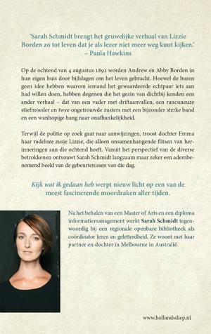 In haar meeslepende debuut Kijk wat ik gedaan heb werpt Sarah Schmidt een nieuw licht op een van de meest fascinerende moordzaken aller tijden, die ze schildert als een intiem verhaal over een explosieve gezinssituatie waar liefde ver te zoeken is.