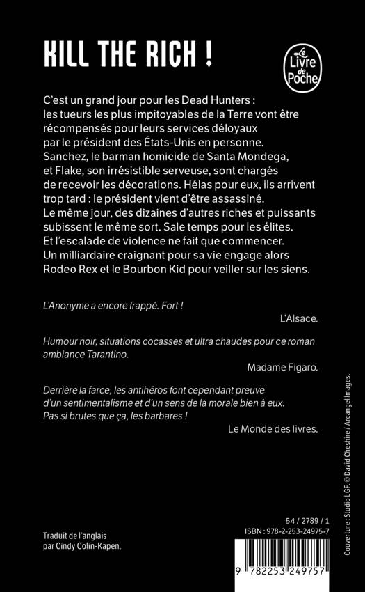C’est un grand jour pour les Dead Hunters : les tueurs les plus impitoyables de la Terre s vont être récompensés pour leurs services déloyaux par le président des États-Unis en personne. Sanchez, le barman homicide de Santa Mondega, et Flake, son irrésistible serveuse, sont chargés de recevoir les décorations. Hélas pour eux, ils arrivent trop tard : le président vient d’être assassiné. Le même jour, des dizaines d’autres riches et puissants subissent le même sort. Sale temps pour les élites. Et l’escalade de violence ne fait que commencer. Un milliardaire craignant pour sa vie engage alors Rodeo Rex et le Bourbon Kid pour veiller sur les siens.