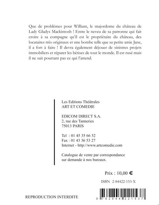 Que de problèmes pour William, le majordome du château de Lady Gladys Mackintosh ! Entre le neveu de sa patronne qui fait croire à sa compagne qu'il est le propriétaire du château, des locataires très originaux et une bombe telle que sa petite amie Jane, il a fort à faire ! Il devra également déjouer de sinistres projets immobiliers et réparer les bêtises de tout le monde. Il est rusé mais il ne sait pourtant pas ce qui l'attend.