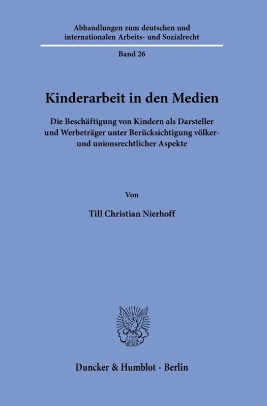 English summary: Child Labor in the Media. The Employment of Children as Actors and in Advertising, Considering International and EU Law Taking into account aspects of labor and family law, the work deals with the legal implications of children's work in the media industry. It examines both the contractual employment relationships of children under national law and their implications under international and EU law. The thesis concludes with suggestions for improving the situation of children working in the media industry. German description: Kinderarbeit findet nicht ausschliesslich innerhalb der klassischen Erscheinungsformen, wie der Tatigkeit in Landwirtschaftsbetrieben, in der Textilindustrie oder in Minen statt. Vielmehr hat sich insbesondere in westlichen Staaten mit der Medienindustrie ein Wirtschaftszweig entwickelt, der entscheidend von der Mitwirkung von Kindern abhangig ist. Kinder wirken nicht nur in Spielfilmen und Castingshows mit, sie sind auch selbstverstandlicher Teil der Werbeindustrie und treten in den sozialen Medien als sogenannte Kidfluencer auf. Dabei haben die Eltern haufig eigene wirtschaftliche Interessen an der Vermarktung ihrer Kinder. Die Arbeit untersucht die Phanomenbereiche der Kinderarbeit in den Medien aus einer arbeits-, familien-, unions- und volkerrechtlichen Perspektive, ordnet sie in den bestehenden Rechtsrahmen ein und schliesst mit konkreten Reformvorschlagen. Die Untersuchung zeigt, dass die in den Medien tatigen Kinder national und international geachteter Kinderarbeit nachgehen.