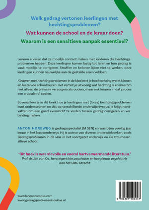 Leraren ervaren dat ze moeilijk contact maken met kinderen die hechtingsproblemen hebben: deze leerlingen komen lastig tot leren en hun gedrag is vaak moeilijk te corrigeren. Straffen en belonen lijken niet of nauwelijks te werken, nauwelijks kunnen ze aan de gestelde eisen voldoen. Dit boek leert je hoe hechting werkt in de klas- en schoolomgeving, en hoe je er best mee omgaat. Je krijgt handvatten om een goed evenwicht te vinden tussen gedrag corrigeren en verbinding maken.