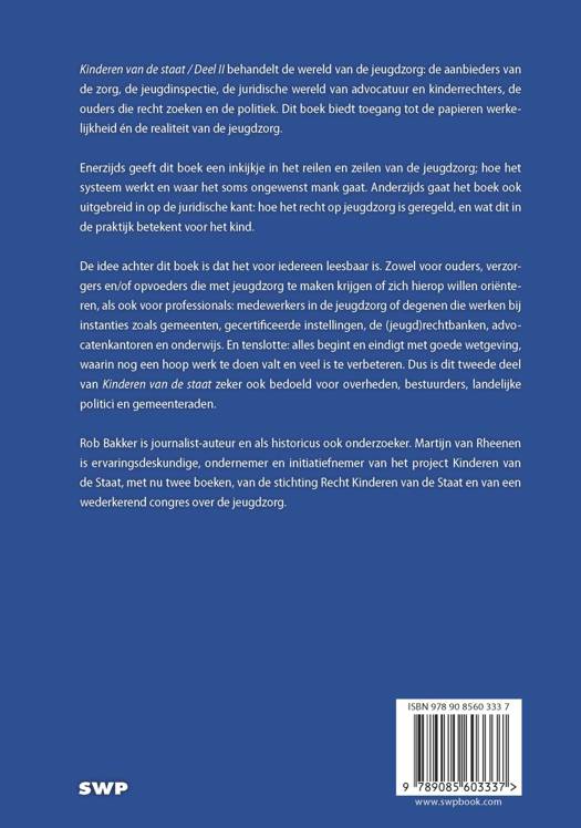 Kinderen van de staat / Deel II behandelt de wereld van de jeugdzorg: de aanbieders van de zorg, de jeugdinspectie, de juridische wereld van advocatuur en kinderrechters, de ouders die recht zoeken en de politiek. Dit boek biedt toegang tot de papieren werkelijkheid én de realiteit van de jeugdzorg.