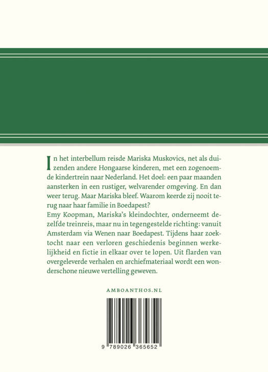 In het interbellum reisde Mariska, zoals duizenden andere vermagerde Hongaarse kinderen, met een zogenoemde kindertrein naar Nederland. Het doel: een paar maanden aansterken in een rustiger, welvarender omgeving, en dan weer terug. Maar Mariska bleef. Waarom keerde zij nooit terug naar haar familie in Boedapest?