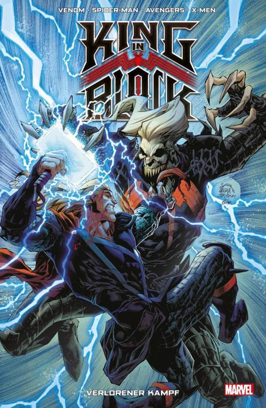 Der zweite Band zum sensationellen Crossover King in Black, inszeniert von Donny Cates (VENOM), Ryan Stegman (SPIDER-MAN), Gerry Duggan (DEADPOOL), Luke Ross (CAPTAIN AMERICA), Germán Peralta (MAESTRO) und anderen.