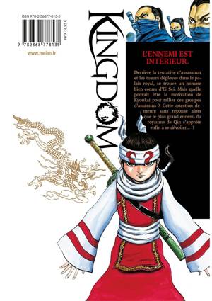 Derrière la tentative d'assassinat et les tueurs déployés dans le palais royal, se trouve un homme bien connu d'Ei Sei. Mais quelle pouvait être la motivation de Kyoukai pour rallier ces groupes d'assassins ? Cette question demeure sans réponse alors que le plus grand ennemi du royaume de Qin s'apprête enfin à se dévoiler...!!