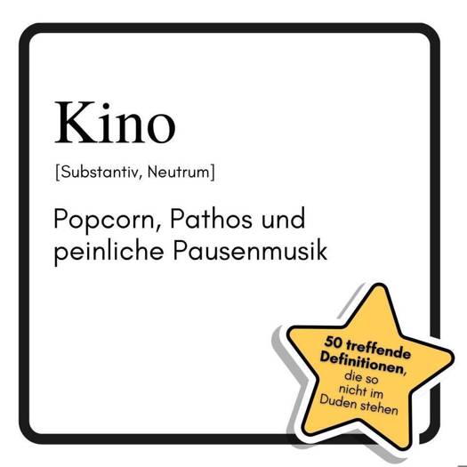 Popcorn im Haar, Nachos auf dem Schoß und die peinliche Pausenmusik, die einfach nicht enden will - wer glaubt, Kino sei nur Film, hat "Kino: Popcorn, Pathos und peinliche Pausenmusik" noch nicht erlebt! Dieses Buch enthüllt die wahren Stars des Kinobesuchs: von der 3D-Brille, die nie richtig sitzt, bis zum Popcornverkäufer mit Oscar-verdächtigem Lächeln. 50 humorvolle Definitionen und liebevoll gezeichnete Illustrationen zeigen, warum Kino so viel mehr ist als Blockbuster und Becherhalter.Für wen dieses Buch perfekt ist:- Für Cineasten mit Sinn für Humor- Für alle, die Popcorn lieber werfen als essen- Für Fans von kuriosen AlltagsbeobachtungenEin Geschenk für Filmfreunde, ein Must-have für Kinogänger und ein Augenzwinkern für alle, die schon mal im falschen Saal saßen.Was dieses Buch bietet:- 50 witzige Definitionen rund ums Kino- Passende Illustrationen zu jedem Begriff- Satirischer Blick auf Kino-Kult und Klischees- Ideales Geschenk für Filmfans