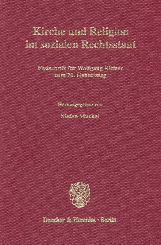 Der 70. Geburtstag Wolfgang Rüfners am 8. September 2003 gibt 51 Autorinnen und Autoren Anlass, ihrerseits einen weiteren Teil zur wissenschaftlichen Auseinandersetzung mit Kirche und Religion im sozialen Rechtsstaat beizutragen und die in dieser Festschrift gebündelten Gedanken und Erkenntnisse dem Jubilar in Hochachtung und Dankbarkeit zu überreichen.