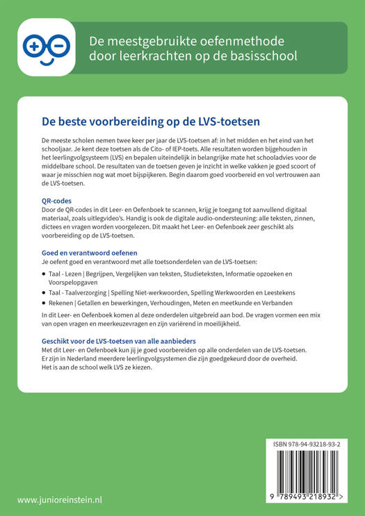 De Leer- en Oefenboeken van Junior Einstein zijn al meer dan tien jaar de bestverkochte van Nederland. Elk boek is zorgvuldig samengesteld door leerkrachten en onderwijsspecialisten, onder leiding van Joan Sanders en Michelle Leuveld, de inhoudelijke drijvende krachten achter de onderwijscontent van Junior Einstein. Dankzij hun jarenlange ervaring sluiten deze boeken uitstekend aan op de LVS-toetsen en de behoeften van basisschoolkinderen. Wekelijks oefenen meer dan 500.000 kinderen met plezier én succes met Junior Einstein.